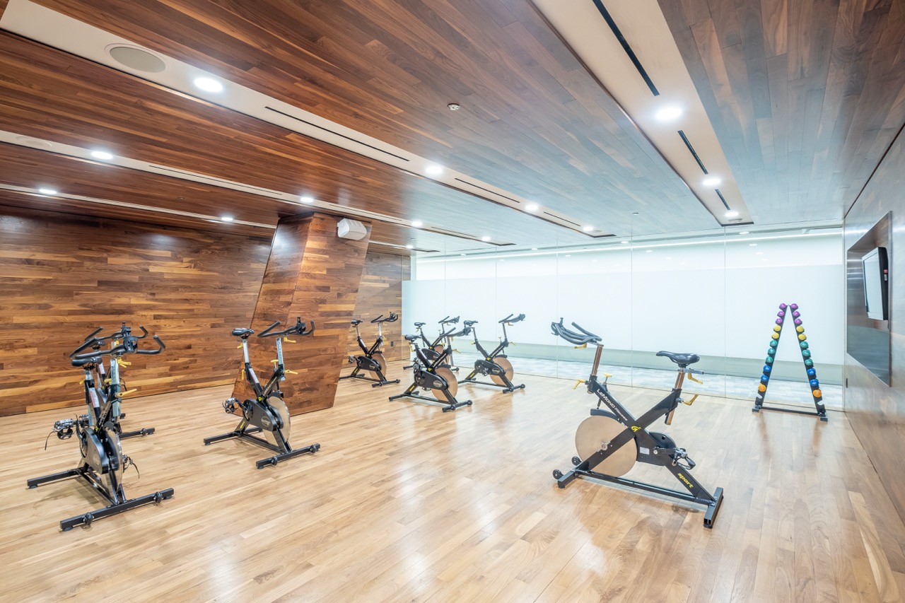 Promote better work-life balance with a dedicated mother’s room, a fitness center, yoga/stretch and cycling rooms, and a locker facility with showers and towel service.